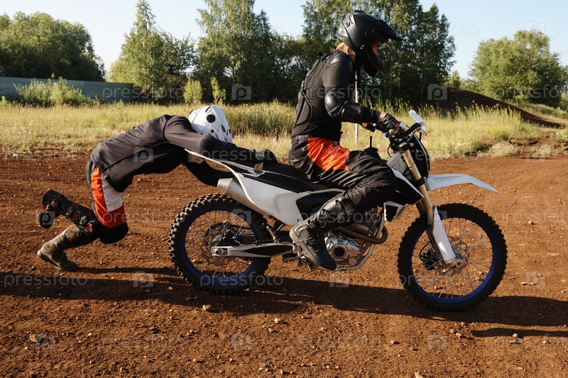 Нажимая на мотоцикл, чтобы запустить его
