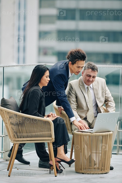 Люди читают отчёт на ноутбуке