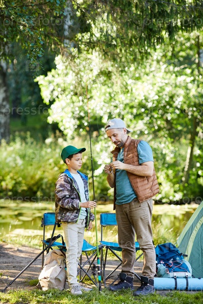 Зрелый мужчина учит сына рыбалке