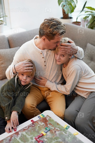 Отец обнимает двух сыновей