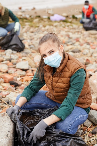 Доброволец с мусором на открытом воздухе