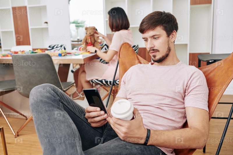 Молодой человек отправляет сообщения друзьям