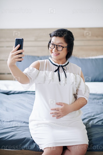 Беременная женщина фотографирует