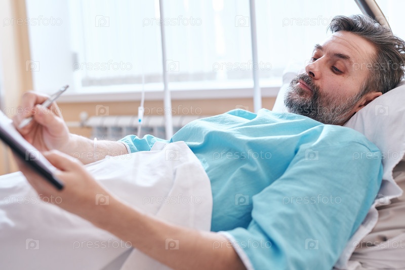 Пациент подписывает документы в больнице