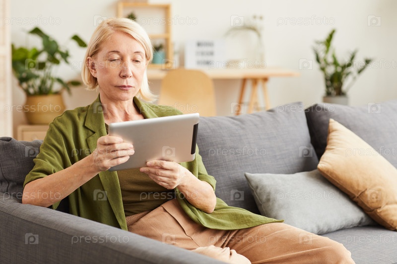 Женщина, использующая планшетный компьютер