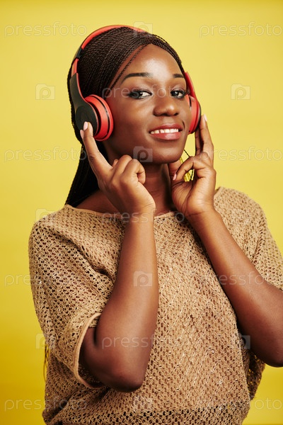 Женщина в наушниках наслаждается музыкой