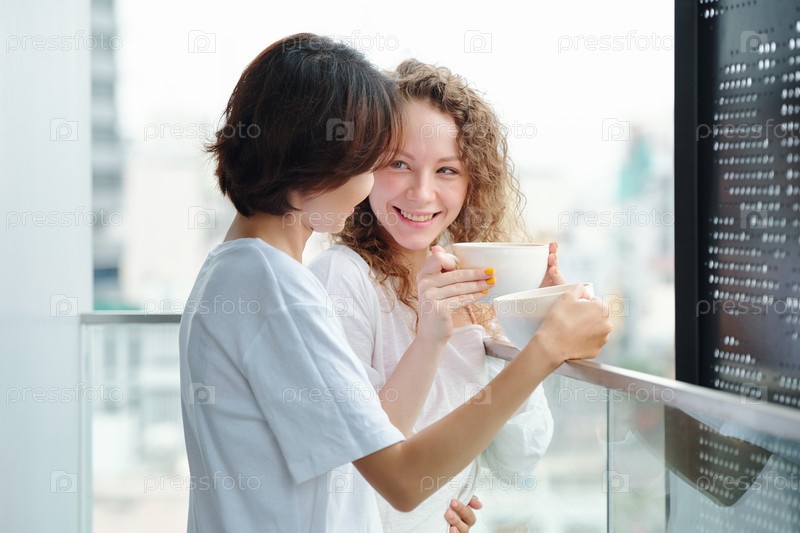 подруги пьют утренний кофе