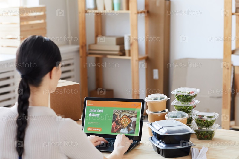 Женщина заказывает еду онлайн
