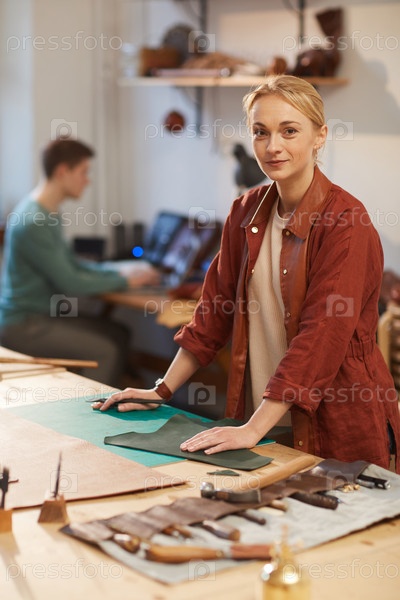 Ремесленница смотрит на камеру