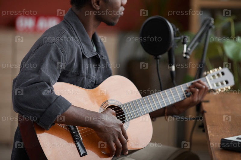 Афроамериканский мужчина записывает песню дома