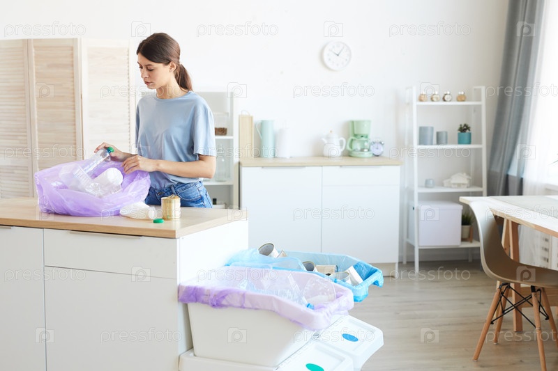 Женщина выбрасывает мусор
