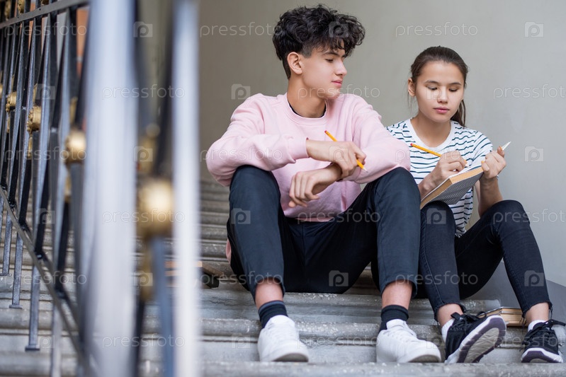 Один из усердных учащихся делает заметки, пока оба читают отрывок из книги