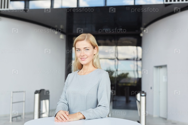 Элегантная блондинка встречает клиентов