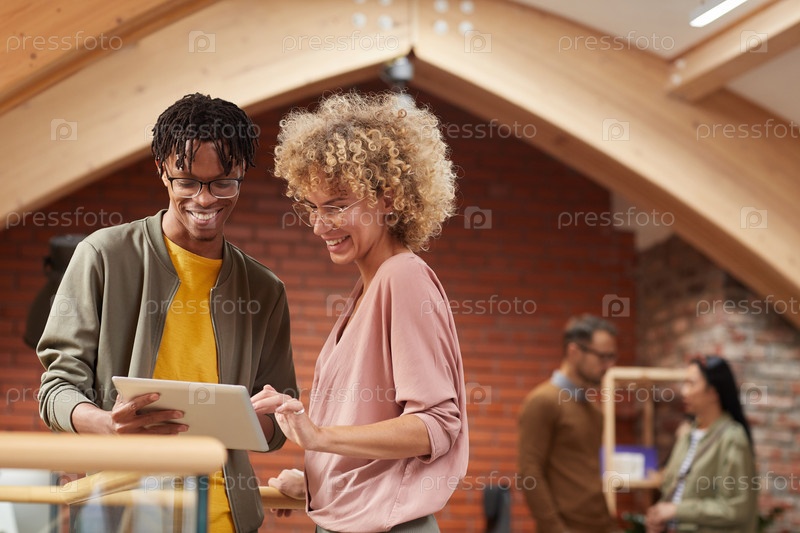 Коллеги работают на планшетном компьютере