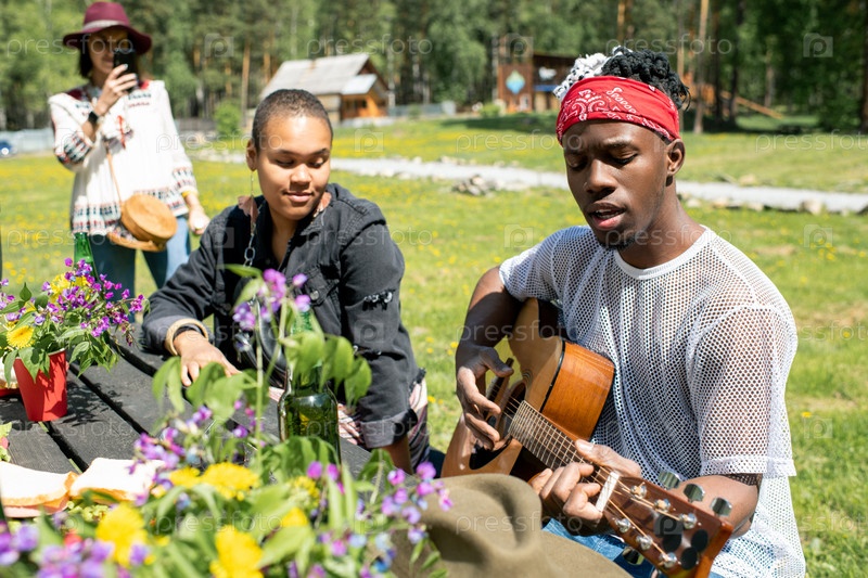 Петь песню для друзей в деревне