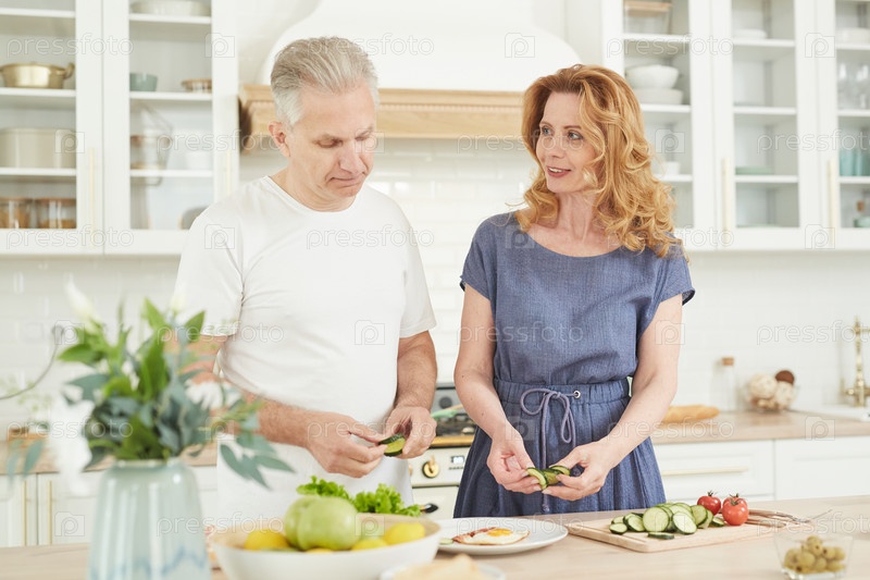 Пара, готовящая завтрак в уютной кухне