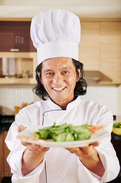 Шеф-повар дает тарелку салата
