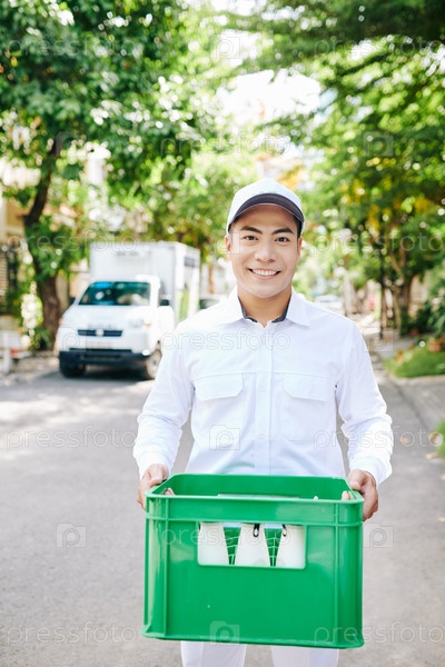 Доставщик с молочным ящиком