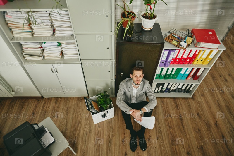 Стрессованный банкрот финансовый директор думает о том, что делать со своим бизнесом