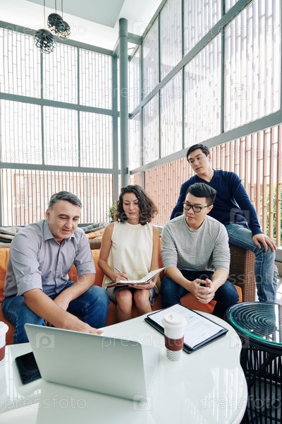 Предприниматель показывает презентацию проекта