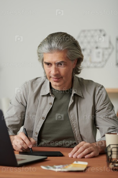 Красивый зрелый дизайнер работает над онлайн-скечем