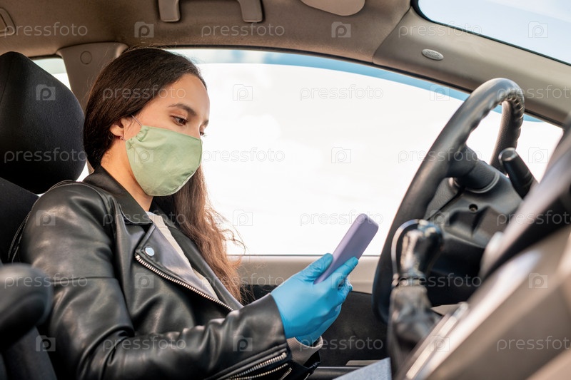 Водительница такси, использующая смартфон