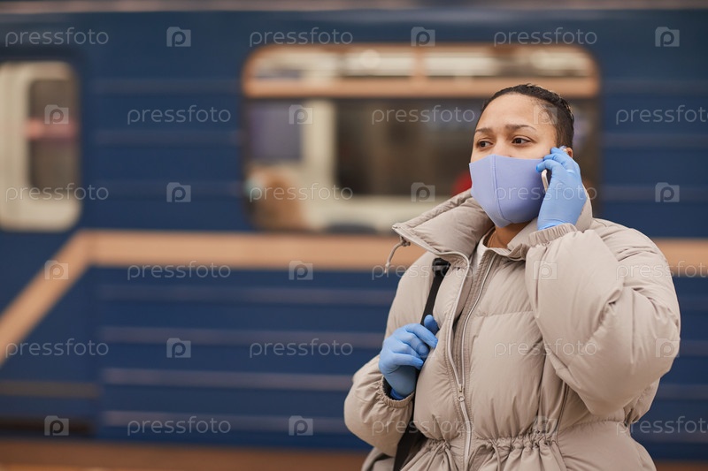 Женщина, разговаривающая по телефону в метро