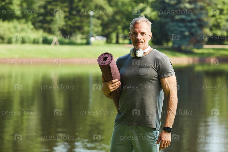 Мышечный мужчина с тренажерным ковриком