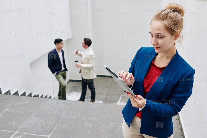 Женщина-предприниматель читает статью