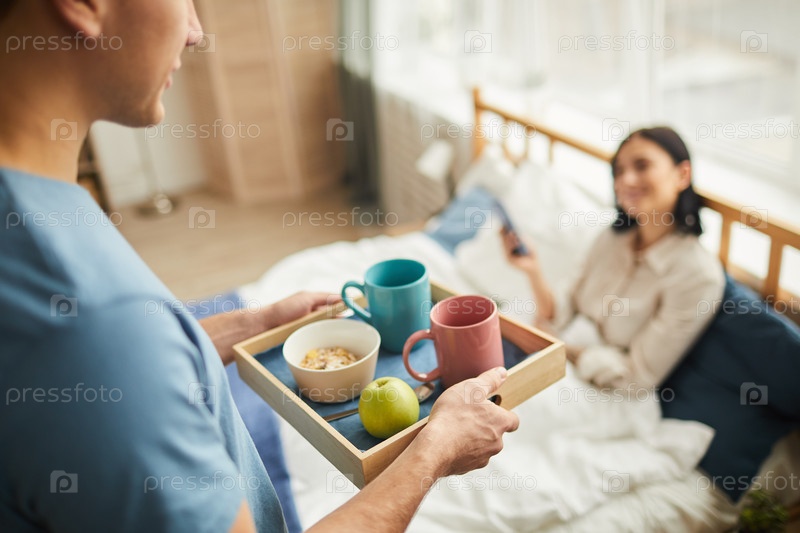 Человек, приносящий завтрак в постели
