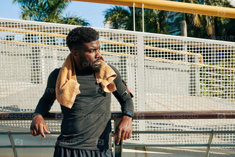 Серьезный усталый молодой спортсмен