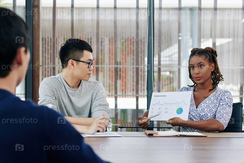 Деловая женщина показывает график коллегам