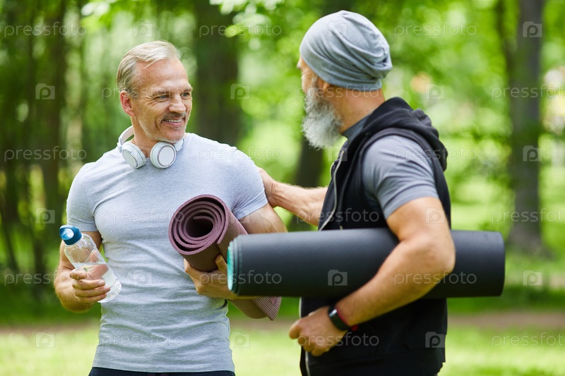 Друзья общаются перед тренировкой
