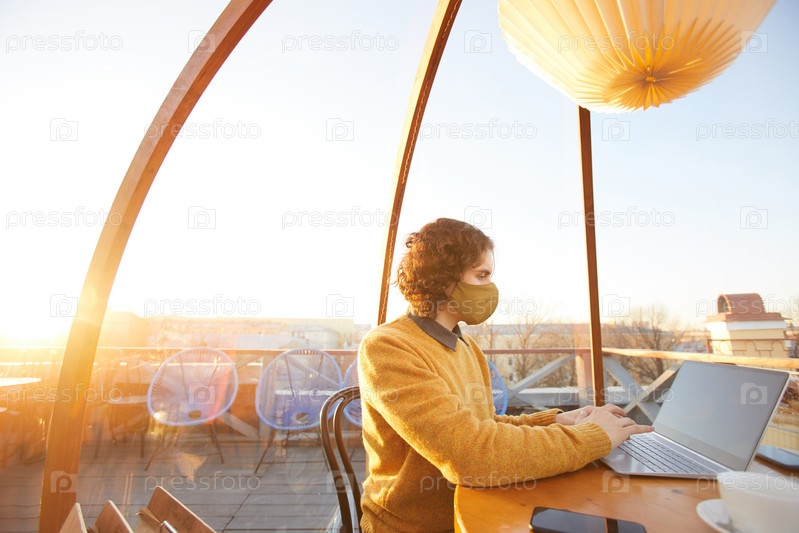 Мужчина, работающий в кафе