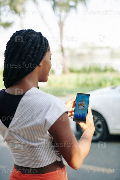 Женщина, использующая приложение для совместного использования автомобилей