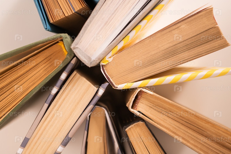 Несколько книг в бумажных обложках на белом столе, которые можно использовать как фон