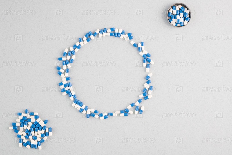 Плоская схема круга, состоящего из капсул с теми же таблетками в круглых крышках