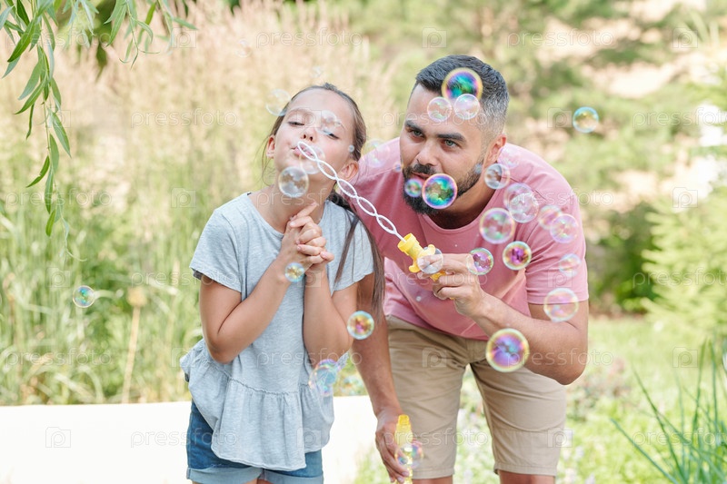 Отец и дочь с мыльными пузырями