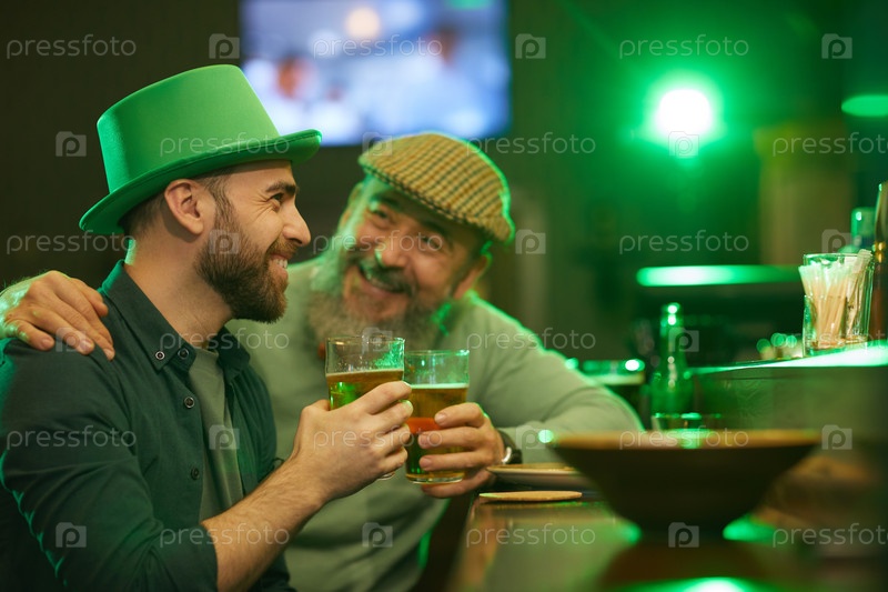 Мужчины, сидящие за стойкой бара с пивом