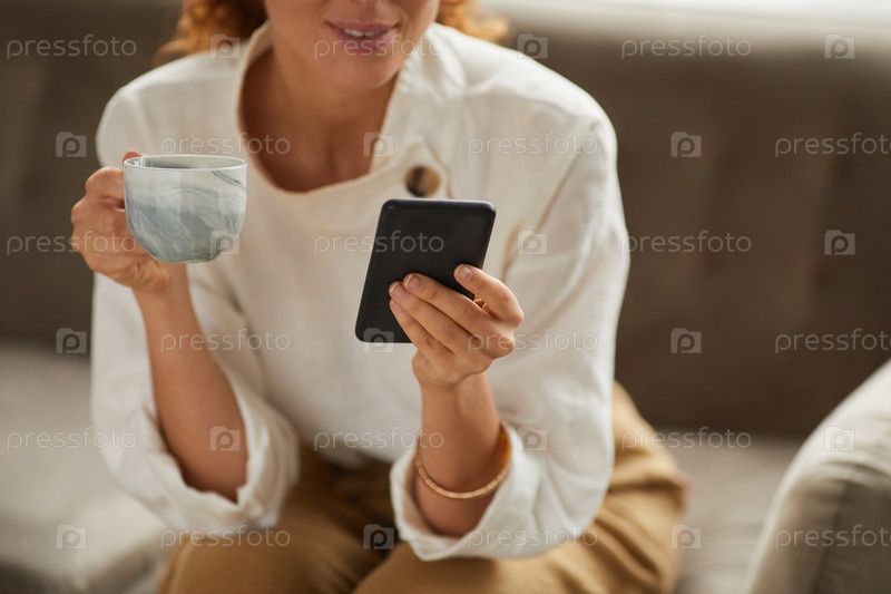 Успешная деловая женщина держит смартфон вблизи