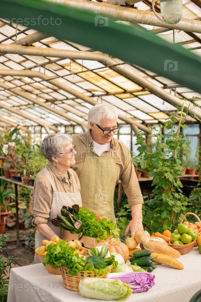 Пожилая пара продает овощи из своего сада