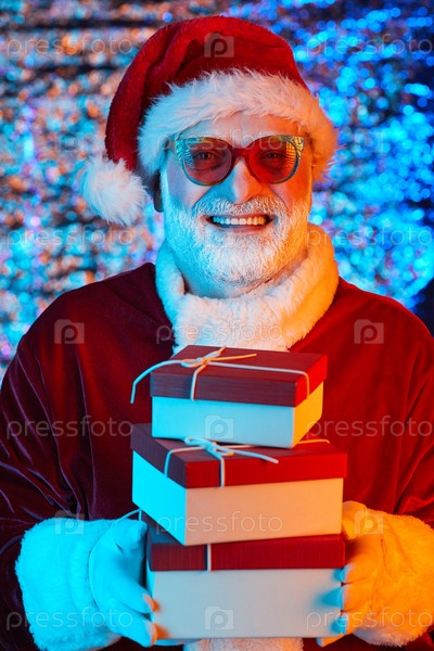 Санта с коробками для подарков