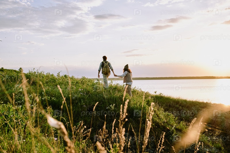 Держится за руку подруги во время похода по холмам