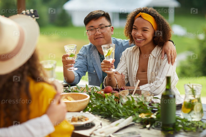 Друзья, наслаждающиеся ужином на свежем воздухе