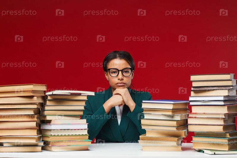 Молодая бизнесвумен на столе с книгами