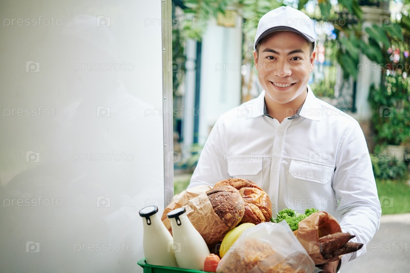 Доставщик с свежими продуктами
