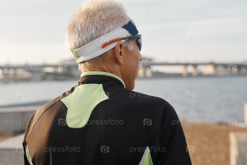 Зрелый мужчина в спортивной одежде на открытом воздухе Задним видом