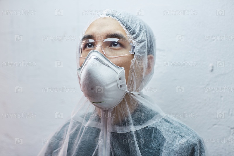 Азиатский мужчина в защитной одежде