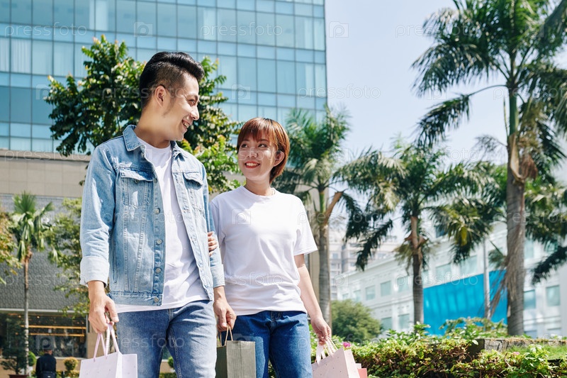 Пара, выходящая из торгового центра