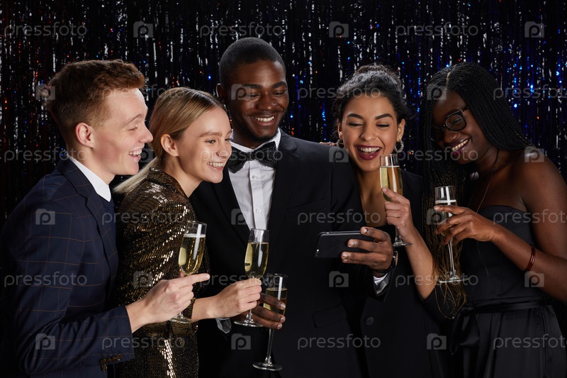 Мультиэтническая группа друзей, наслаждающихся вечером выпускного бала